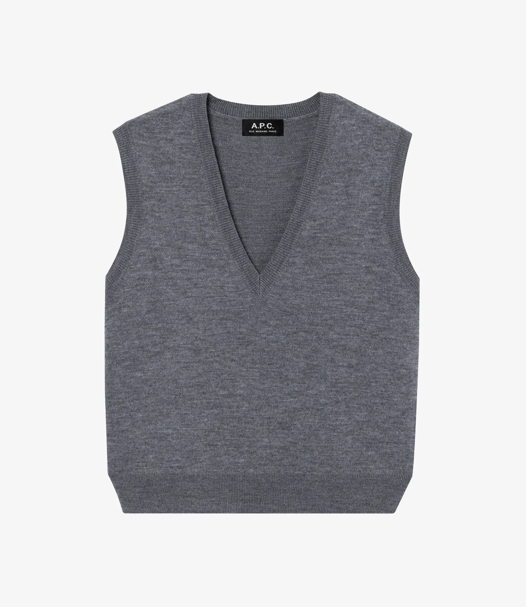 - Fitted cut. - Deep V-neck. - Tone-on-tone A.P.C. logo embroidered over the heart. Size Advice - Grace is 5'10 tall and is wearing size S. - This item sizes normally. We recommend that you select your usual size. Composition & Material - 100% wool. - Made in Hong Kong. - Hand wash or delicate cycle.