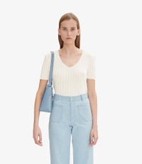 - Fitted cut. - V-neck. - Embroidered details on the sleeves and neckline. - This garment is GOTS-certified which guarantees the organic origin of this clothing and the compliance with strict social and environmental criteria throughout the production chain. - GOTS-certified product (No. 214416/EGL) - Organic textile. Size Advice - Kelsey is 5'10 tall and is wearing size S. Composition & Material - 100% cotton. - Portuguese material. - Made in Portugal. - Machine wash cold (86°F) inside-out.