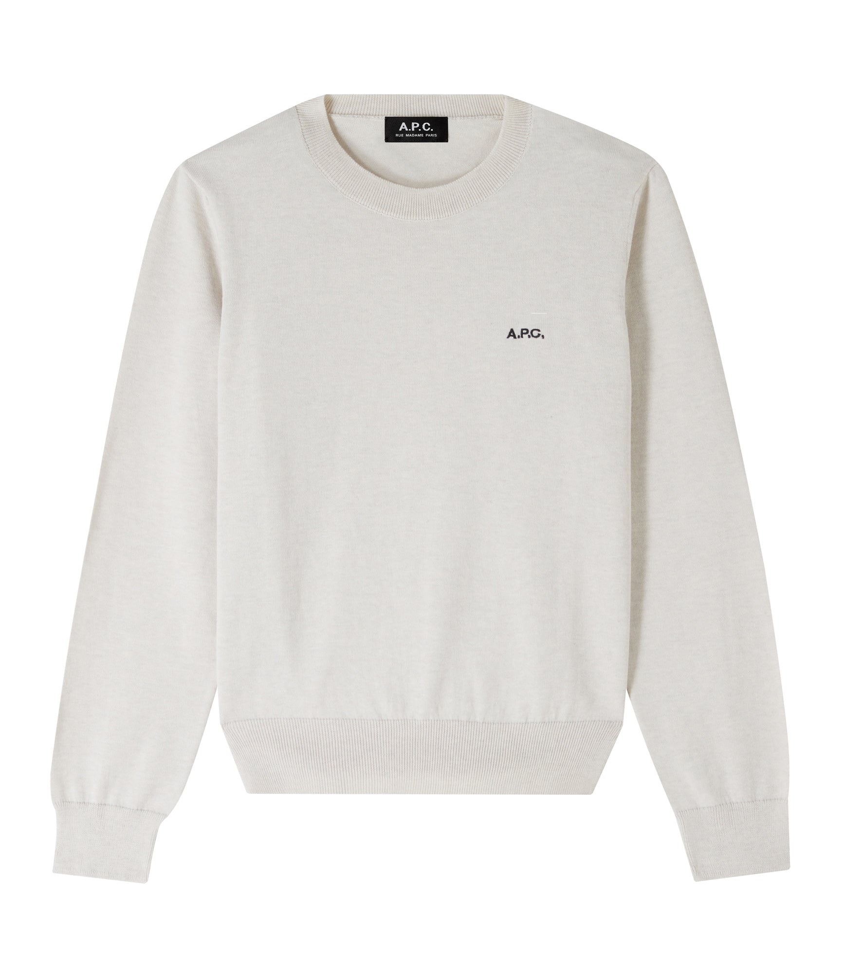 - Soft lightweight material. - Straight cut. - Crew neck. - Black A.P.C. logo embroidered over the heart. Size Advice - Licett is 5'10 tall and is wearing size S. Composition & Material - 100% cotton. - Made in Turkey. - Hand wash or delicate cycle. Our commitments Through its RESPECT program A.P.C reduces (by implementing many practical measures to improve its environmental footprint) regulates (by respecting and enforcing its ethical responsibility on the part of its employees as well as its suppliers) and reuses (through its recycling vintage or quilts and butler programs for example).