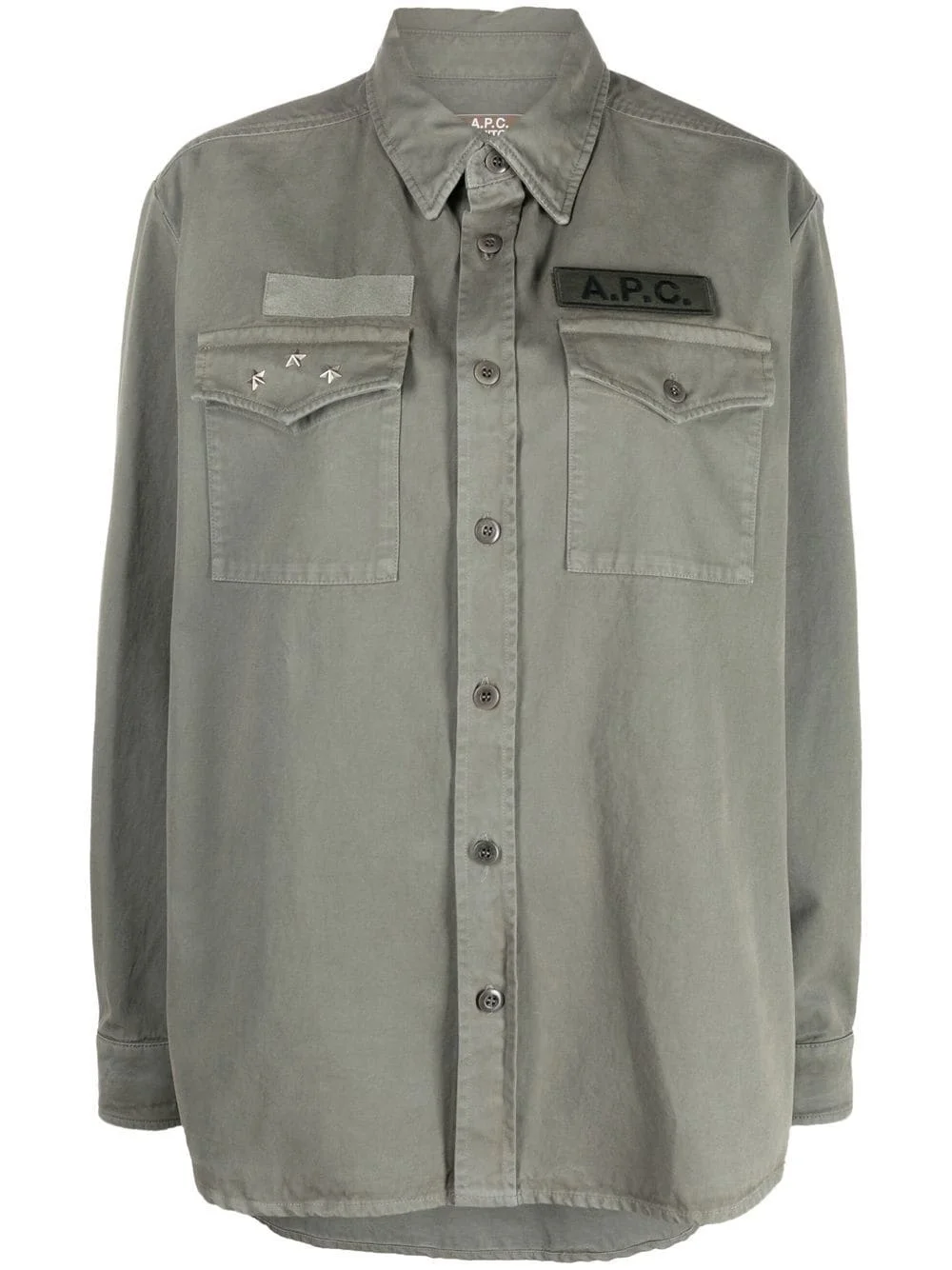 logo-patch shirt jacket The minimalist design style of A.P.C reflects the Parisian roots of the brand. Punctuated with star-stud embellishments, this long-sleeve shirt jacket also has a contemporary edge. Made In Italy Composition Cotton 100% SIZE & FIT Model measurements Height 5 ft 11 in(1.8 m) Bust/Chest 33.07 in(84 cm) Hips 37.4 in(95 cm) Waist 25.19 in(64 cm) FittingInformation This piece fits true to size. We recommend you get your regular size Cut for a loose fit Made with a mid-weight non-stretch fabric Washing instructions Machine Wash