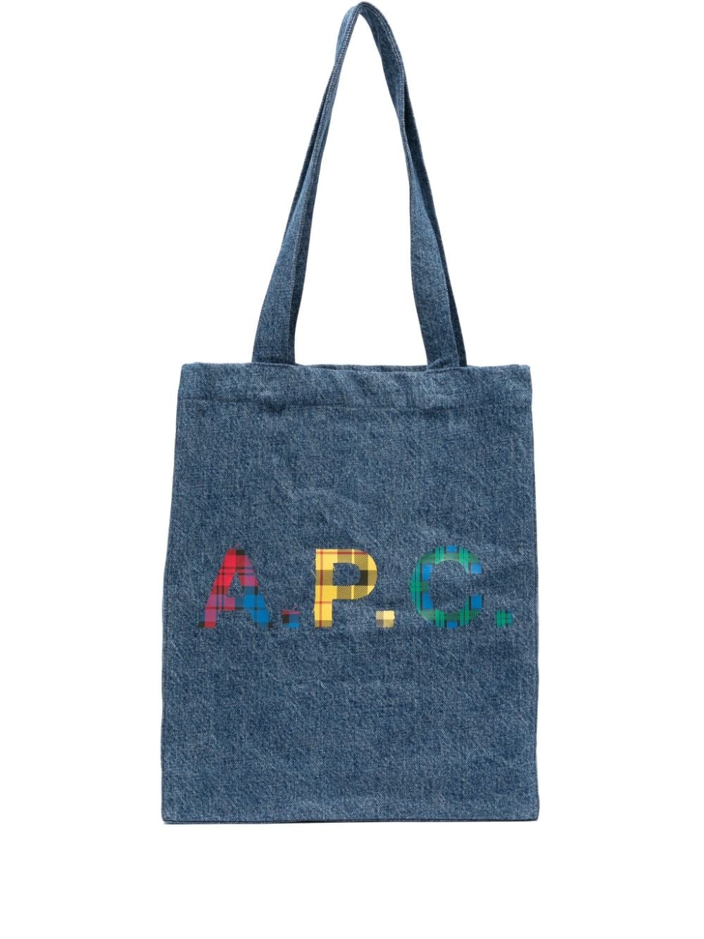 Lou denim tote bag One of A.P.C.'s much-loved accessories, the Lou tote is reimagined in blue denim with a colourful checked logo print front and centre – a nod to the Parisian label's penchant for casual and playful designs. Highlights - Blue/multicolour - Cotton - Denim - Logo print to the front - Open top - Circular top handles - Main compartment Imported Composition Outer: Cotton 100% SIZE & FIT Model measurements Height 5 ft 9 in(1.75 m) Bust/Chest 33.1 in(84 cm) Hips 35 in(89 cm) Waist 24 in(61 cm) Measurement DEPTH 3.1 in(8 cm) HANDLE 11.8 in(30 cm) HEIGHT 14.6 in(37 cm) WIDTH 11.8 in(30 cm)