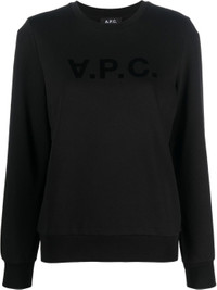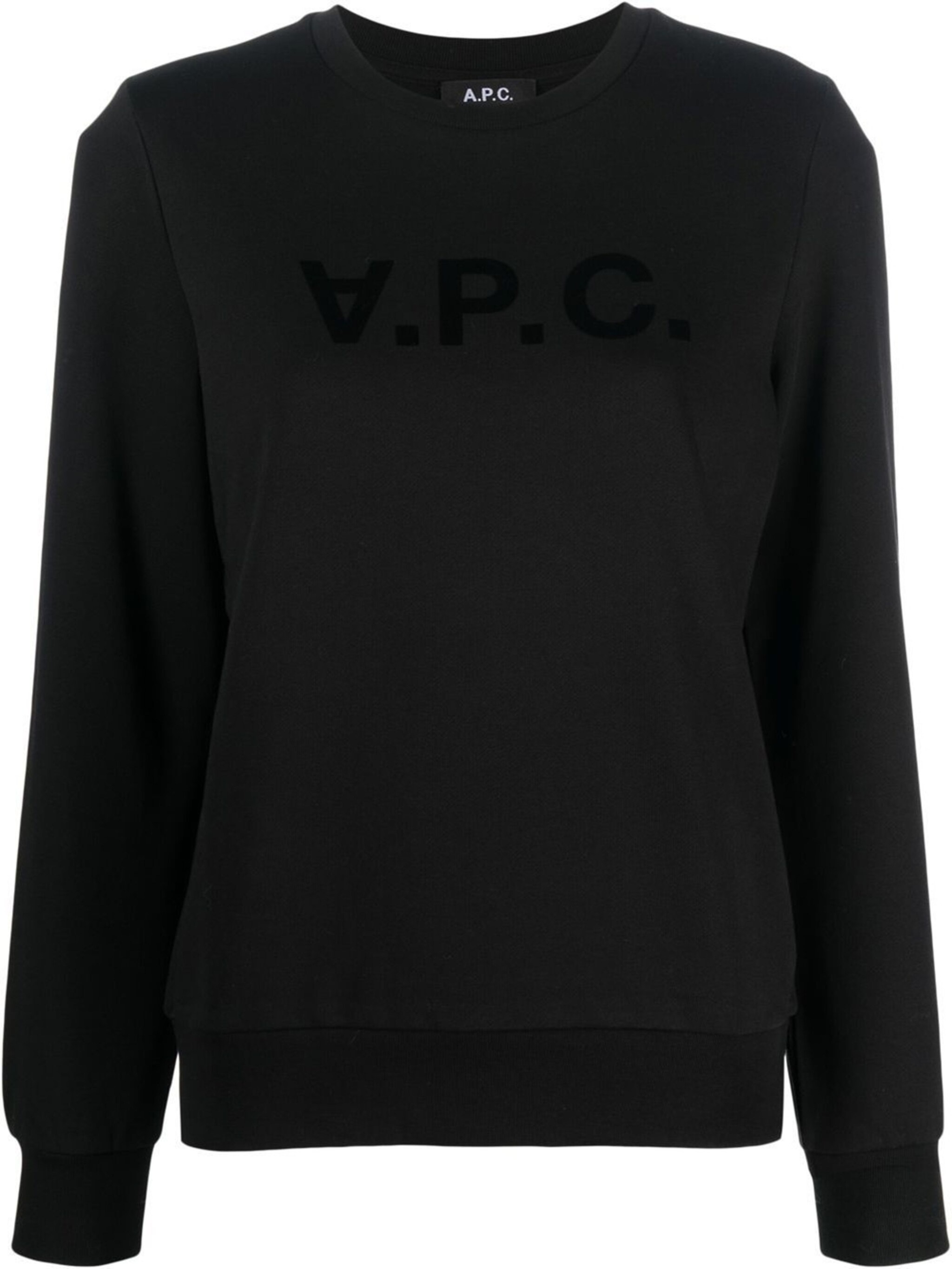 logo-print sweatshirt from A.P.C. featuring black, cotton, logo print to the front, crew neck, long sleeves, ribbed trim and straight hem. Size & Fit Model Measurements: Height: 1.78 m Bust/Chest: 85.0 cm Hips: 91.0 cm Waist: 65.0 cm Model wears size M Fabric and Care Designer Style ID: COFAXF27644 Designer Colour: LZZ NOIR Composition: Cotton 100% Washing instructions: Machine Wash Made in Turkey