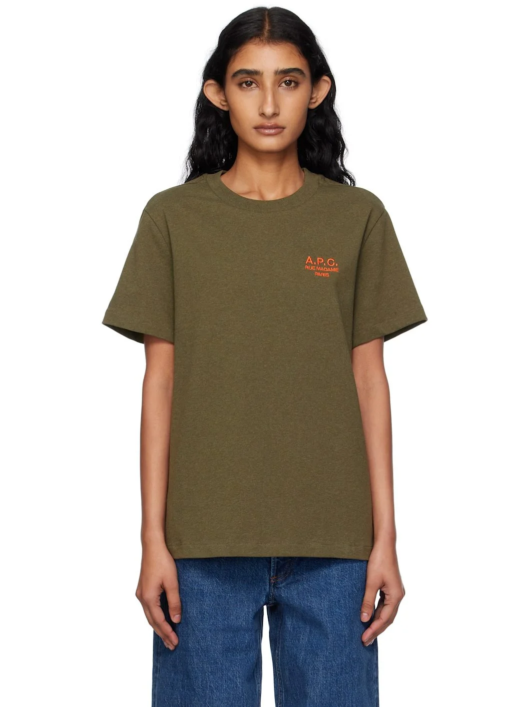 Heavyweight organic cotton jersey T-shirt. · GOTS-certified cotton · Rib-knit crewneck · Logo embroidered at chest Supplier color: Khaki green 100% organic cotton. Made in Portugal 252252F110002