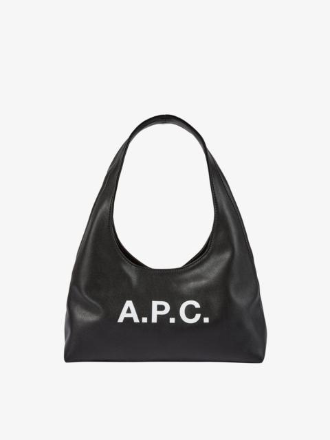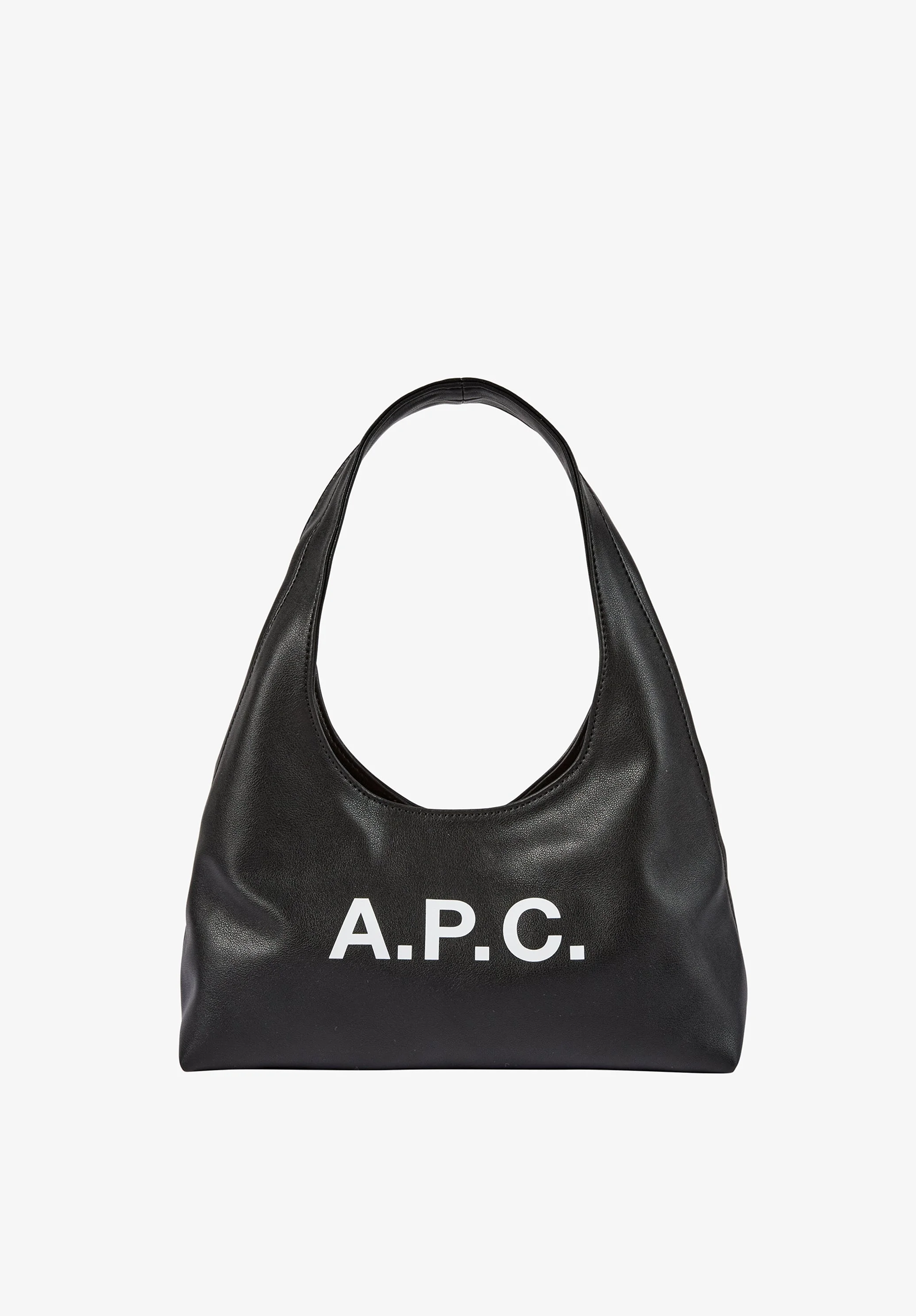 - Recycled leather-like material. - Magnetic inside closure. - Two handles to carry the bag on the shoulder or by hand. - One inside pocket. - White A.P.C. logo in front. - In the Ninon product line. Size Advice - Dimensions: 26.5 x 13 x 4.5 cm. Composition & Material - 55% polyurethane. 40% polyester. 5% calcium carbonate. - Made in China. - Care instructions: wipe with a soft dry cloth.