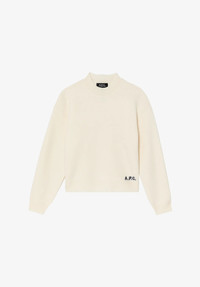 A.P.C. Women's sweater. - Soft warm and thick material. - Boxy cut. - Crew neck. - Sloping shoulders. - Contrasting A.P.C. logo at lower left. - Six tone-on-tone corozo buttons. Size Advice - Julie is 5'9 tall and is wearing size S. Composition & Material - 100% wool. - Made in China. - Machine wash delicate cycle or by hand.