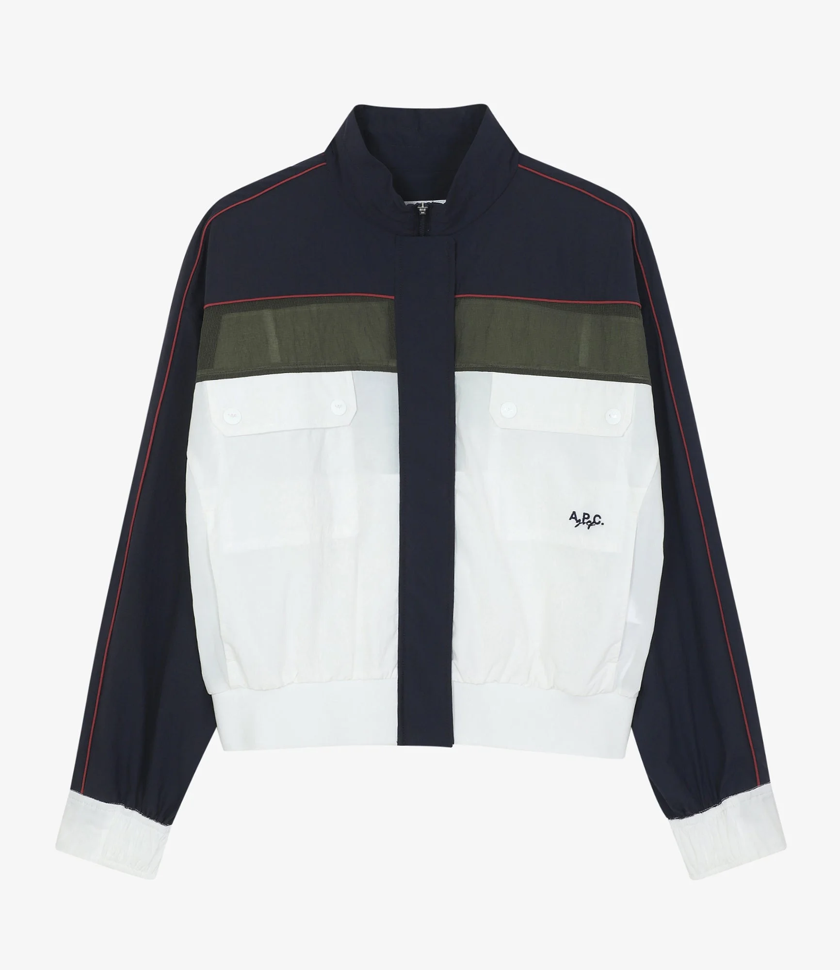 A.P.C. Women's jacket. - Thin material. - Straight cut. - High collar adjusts with a drawstring. - Two flap pockets on the chest with A.P.C. Golf logo buttons. - Hidden zip closure. - Wrists adjust with A.P.C. Golf snap buttons. Size Advice - Angelina is 5'8 tall and is wearing size S. Composition & Material - 93% nylon. 7% elastane. - Made in South Korea. - Machine wash cold (86°F) inside-out.
