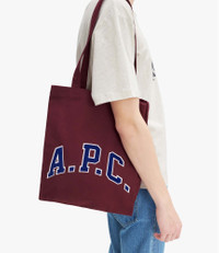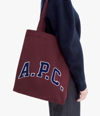 - Unisex piece. - Tote bag in heavyweight cotton canvas. - Two large handles to carry the bag by hand or on the shoulder. - Inside pocket. - A.P.C. screenprint on front. Size Advice - Dimensions: 11.8 x 14.6 x 3.3. Composition & Material - 100% cotton. - Made in Bulgaria.