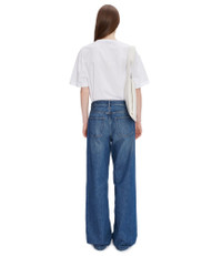 - Straight cut. - High rise. - Flared leg. - Drawstring extends from two silvertone metal eyelets at the waist in front. - Silvertone metal rivets the signature of the line. - Stonewashed effect like that of A.P.C. 'Butler' jeans. - Caramel and blue topstitching. - 100% cotton derived from organic farming. Size Advice - Grace is 5'10 tall and is wearing size 26. - This item sizes normally. We recommend that you select your usual size. Composition & Material - 100% cotton. - Italian material. - Made in Portugal. - Machine wash cold (86°F) inside-out. - Gentle spin cycle. - Do not tumble dry. - The jeans may appear shrunken after washing but they return to their original shape when worn. Our commitments Through its RESPECT program A.P.C reduces (by implementing many practical measures to improve its environmental footprint) regulates (by respecting and enforcing its ethical responsibility on the part of its employees as well as its suppliers) and reuses (through its recycling vintage or quilts and butler programs for example).