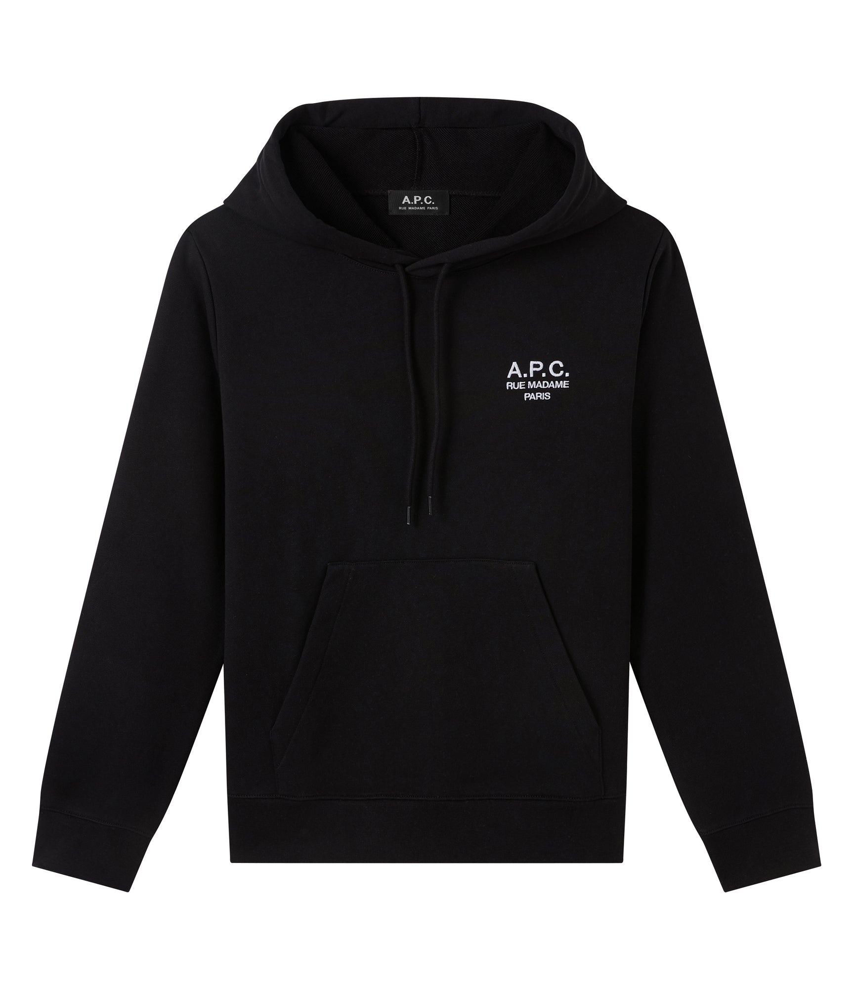 PRODUCT DETAILS Straight cut. Small 'A.P.C. Rue Madame' logo embroidered on the heart. Kangaroo pocket. Tone-on-tone drawstrings. 100% cotton derived from organic farming. FABRIC & CARE - 100% cotton. - Portuguese material. - Made in Portugal. - Machine wash cold (86°F) inside-out.