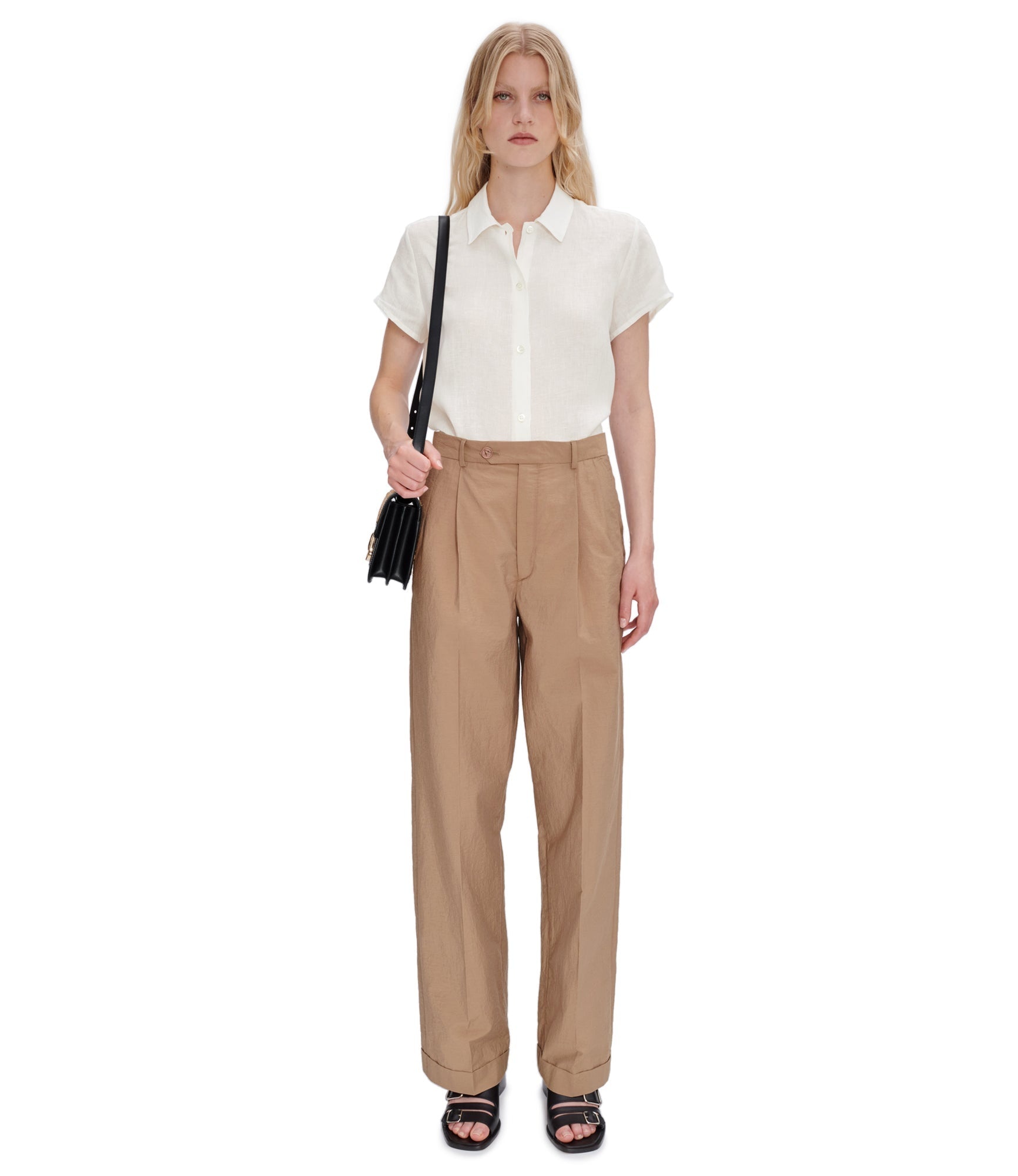 - Short slightly flared oversize cut. - Short sleeves. - Classic collar. - Tone-on-tone mother of pearl buttons. Size Advice - Tinka is 5'9 tall and is wearing size 36. Composition & Material - 100% Linen. - Italian material. - Made in Morocco. - Machine wash cold 65-85˚ F inside-out.