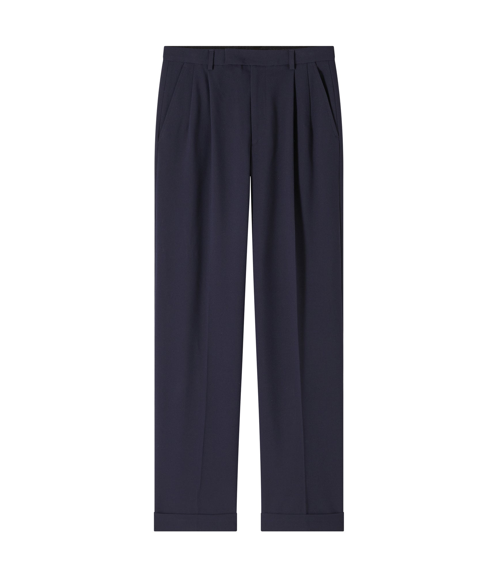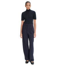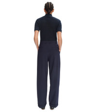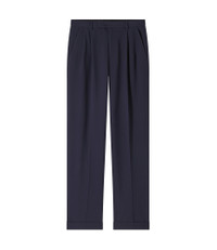 - Straight loose-fitting cut. - High waist. - Long wide leg with pleats at front and back. - Button placket at waistband. - Zip and clip closure. - Two side pockets and one back pocket. - Cuffs at the bottom of the legs. - Made from 68% recycled material and 29% strong breathable viscose from certified sustainable forests. Size Advice - Licett is 5'10 tall and is wearing size 36. Composition & Material - 68% polyester. 29% viscose. 3% elastane. - Made in Portugal. - Made in Bulgaria. - Dry clean only.