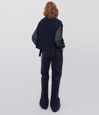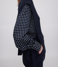 - Straight adjustable cut. - High collar. - Two faux horn buttons on each shoulder. - Side ties. - 100% recycled wool. Size Advice - Matilda is 5'9 tall and is wearing size S. - This item sizes normally. We recommend that you select your usual size. Composition & Material - 100% wool. - Italian material. - Made in Romania. - Hand wash or delicate cycle.