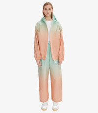 A.P.C. x Asics jacket. - Unisex sizing. For women we recommend that you order one size smaller than usual. - Straight cut. - Crew neck adjusts with two tone-on-tone stoppers and a visor hood. - Waterproof two-way zip closure. - White A.P.C. and Asics logo over the heart. - Two side pockets. - Sleeve elasticated at wrist. - Wear with the Haze trousers. Size Advice - Kelsey is 5'10 tall and is wearing size XS. - For women we recommend that you order one size smaller than usual. Composition & Material - 100% polyester. - Made in China. - Machine wash cold (86°F) inside-out.