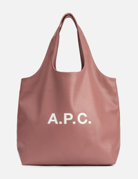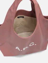 - A.P.C. - Ninon Tote Bag - Soft synthetic leather - Open top - Main compartment with one interior pocket - Large logo print at front - Color: Dark Pink - Material: 60% Polyurethane, 40% Polyester - See more Bags and Accessories SIZING Approximate dimensions: - Height: 36cm - Width: 49cm - Depth: 16cm - Strap Length: 23cm