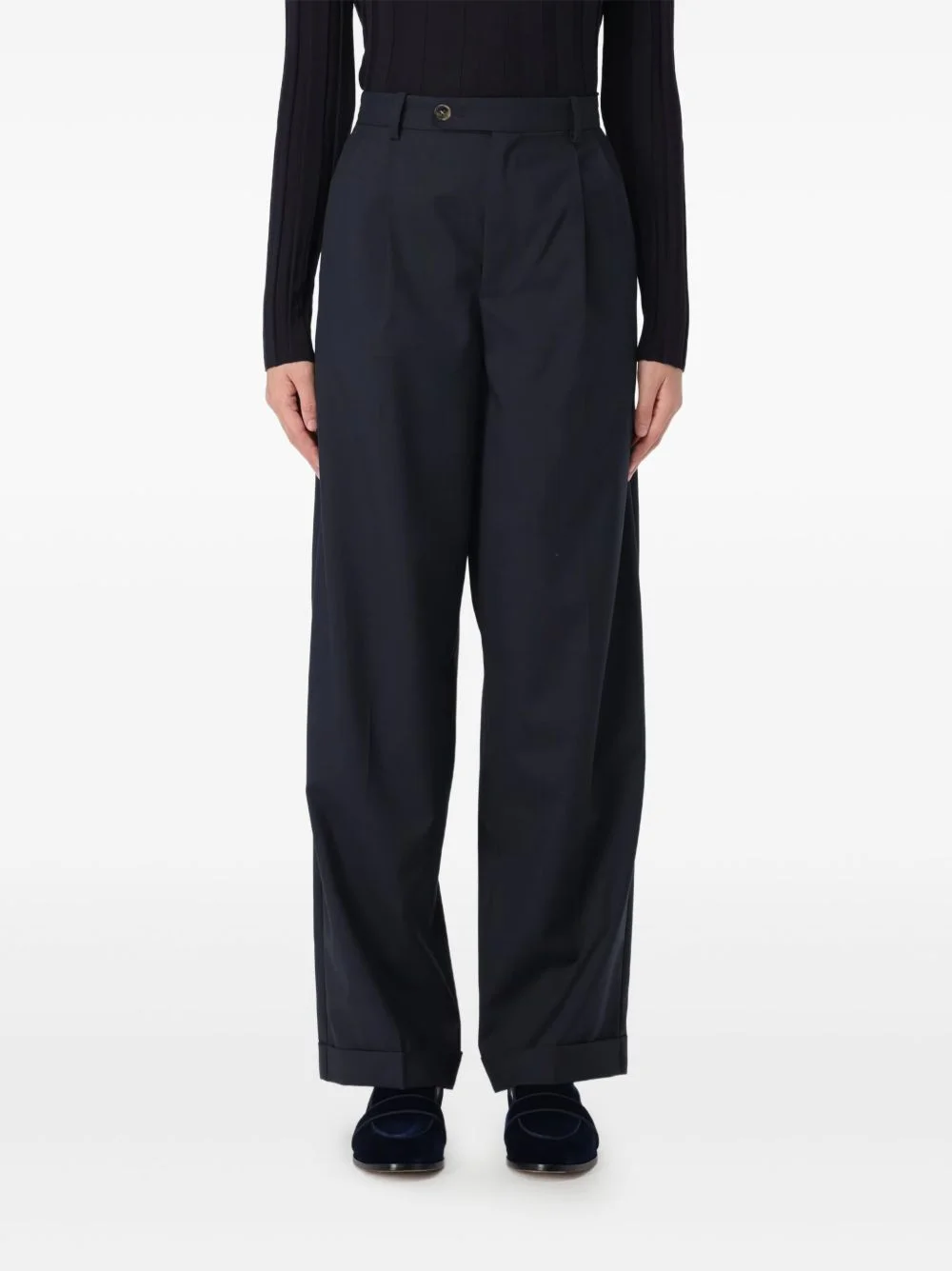 Melisandre pleated trousers Highlights - Dark blue - Belt loops - Button fastening - Front pleats - Turn-up hem - Side seam pockets Imported Composition Fabric 100% Washing instructions Read Manufacturer Guidelines