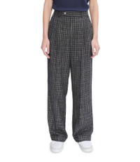 A.P.C. Women's pant. - Straight cut. - High rise. - Wide long leg. Pant pleats front and back. - Pointed buttoned tab closure at waist. - Tone-on-tone corozo buttons. - Side pockets. Back pockets. - 30% Recycled cotton. - May be worn with Stella jacket. Size Advice - Britt is 5'10 tall and is wearing size 36. - This model fits true to size; choose your usual size. Composition & Material - 41% Cotton. 29% Viscose. 28% Polyester. 2% Other fibers. - Italian material. - Made in Bulgaria. - Dry clean. Our commitments Through its RESPECT program A.P.C reduces (by implementing many practical measures to improve its environmental footprint) regulates (by respecting and enforcing its ethical responsibility on the part of its employees as well as its suppliers) and reuses (through its recycling vintage or quilts and butler programs for example).