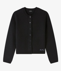 - Soft warm and thick material. - Straight slightly cropped cut. - Crew neck. - Contrasting A.P.C. logo at lower left. - Six tone-on-tone corozo buttons. Size Advice - Julie is 5'9 tall and is wearing size S. Composition & Material - 100% wool. - Made in China. - Machine wash delicate cycle or by hand.