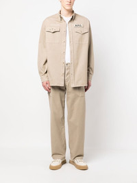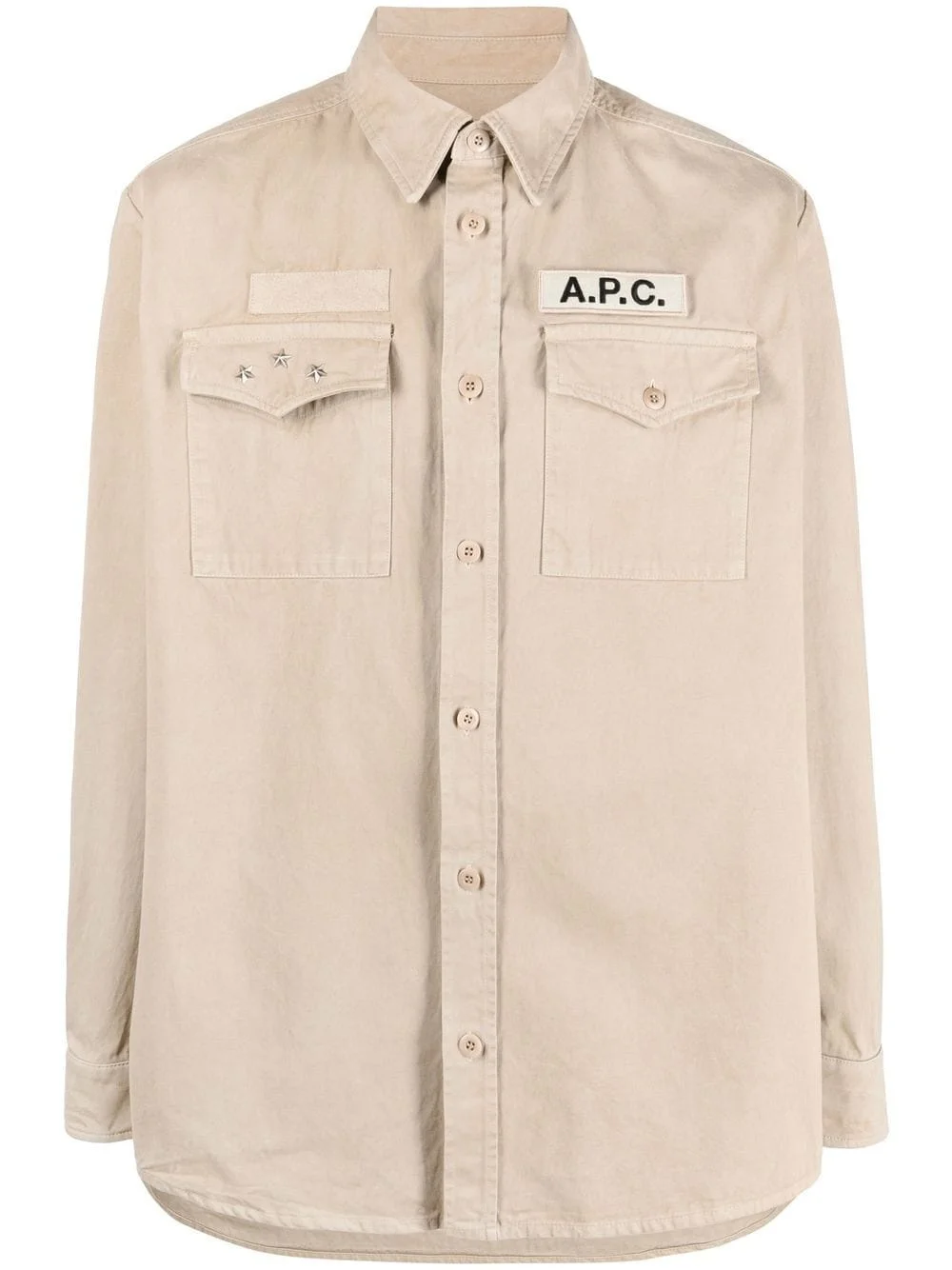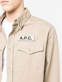 military cotton shirt Merging minimalism with a utilitarian aesthetic, A.P.C. offers this shirt. Flap pockets and a neutral hue lend to this understated design. Imported Composition Cotton 100% SIZE & FIT Model measurements Height 5 ft 11 in(1.8 m) Bust/Chest 33.07 in(84 cm) Hips 37.4 in(95 cm) Waist 25.19 in(64 cm) FittingInformation This piece is unisex. Please take care when selecting your size Designed for a loose fit for men and an oversized fit for women Made with a mid-weight non-stretch fabric Washing instructions Machine Wash