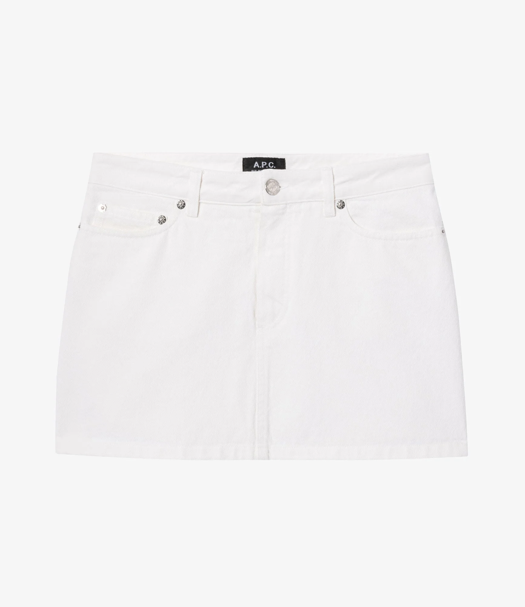 - Very short cut slightly flared. - High rise. - Zip fly. Button at waist engraved A.P.C. rue Madame pres du Luxembourg. - Tone-on-tone topstitching. - 100% organic cotton. Size Advice - Grace is 5'10 tall and is wearing size 36. - This item sizes normally. We recommend that you select your usual size. Composition & Material - 100% cotton. - Spanish material. - Made in Tunisia. - Machine wash cold (86°F) inside-out.