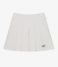 - Straight cut. - Mid-rise. - Mid-thigh length. - Shorts under the skirt. - Elasticated waistband with A.P.C. logo in back. - Hanger for accessory pouch. - Side zip closure. - A.P.C. Golf logo embroidered on the front left. Size Advice - Angelina is 5'8 tall and is wearing size 36. Composition & Material - 93% nylon. 7% elastane. - Made in South Korea. - Machine wash cold (86°F) inside-out.