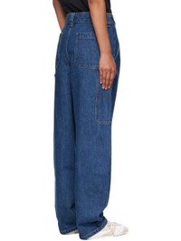 Stonewashed non-stretch organic cotton denim jeans. · Fading throughout · Loose-fit and straight-leg · Mid-rise · Belt loops · Four-pocket styling · Zip fly · Patch pockets at outseam · Hammer loop and patch pocket at outseam · Contrast stitching in tan Supplier color: Indigo delave 100% organic cotton. Made in Viet Nam 252252F069005