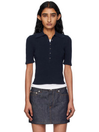 Rib-knit cotton polo. · Spread collar · Six-button placket · Mother-of-pearl hardware Supplier color: Dark navy 100% cotton. Made in Turkey 252252F108003
