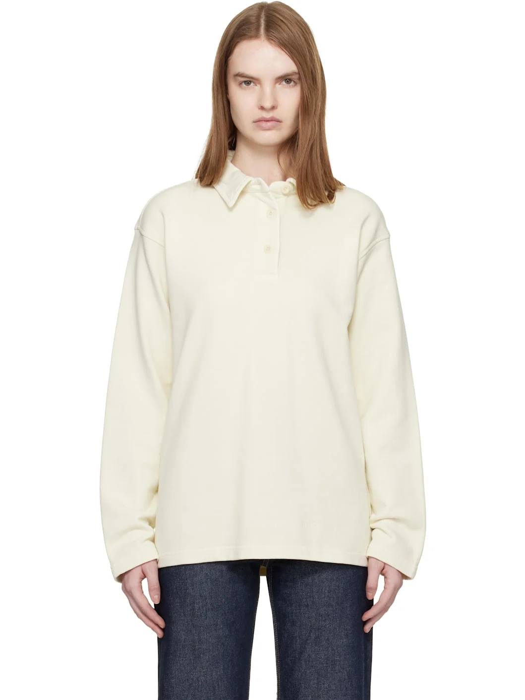 Organic cotton fleece polo. · Spread collar · Button placket · Embroidered logo at front hem · Dropped shoulders Supplier color: Washed Indigo 100% cotton. Made in Turkey 261252F108001