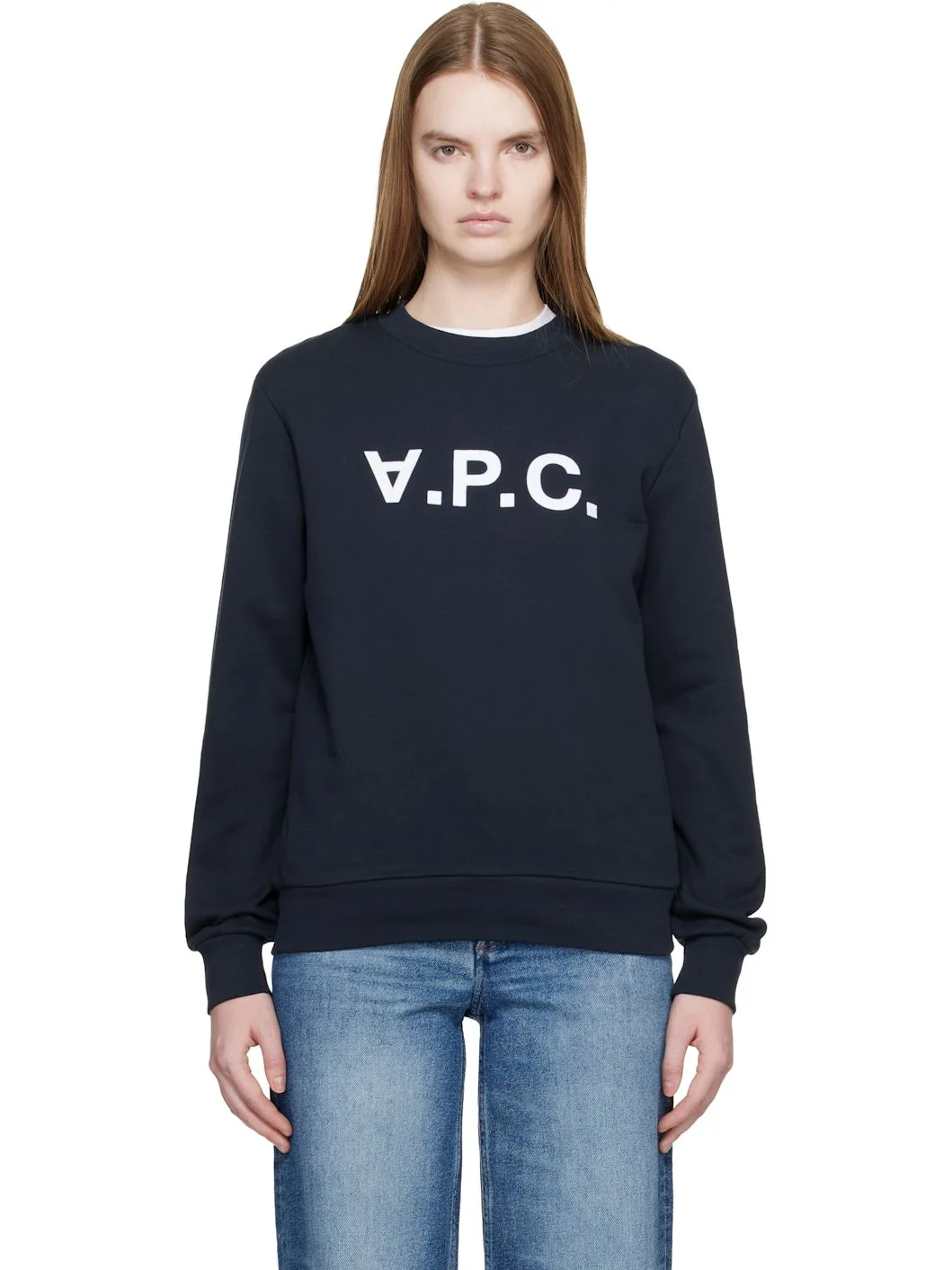 GOTS-certified organic cotton French terry sweatshirt. · Rib-knit crewneck, hem, and cuffs · Logo flocked at chest Supplier color: Dark navy blue 95% organic cotton, 5% elastane. Made in Turkey 261252F098000