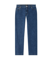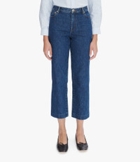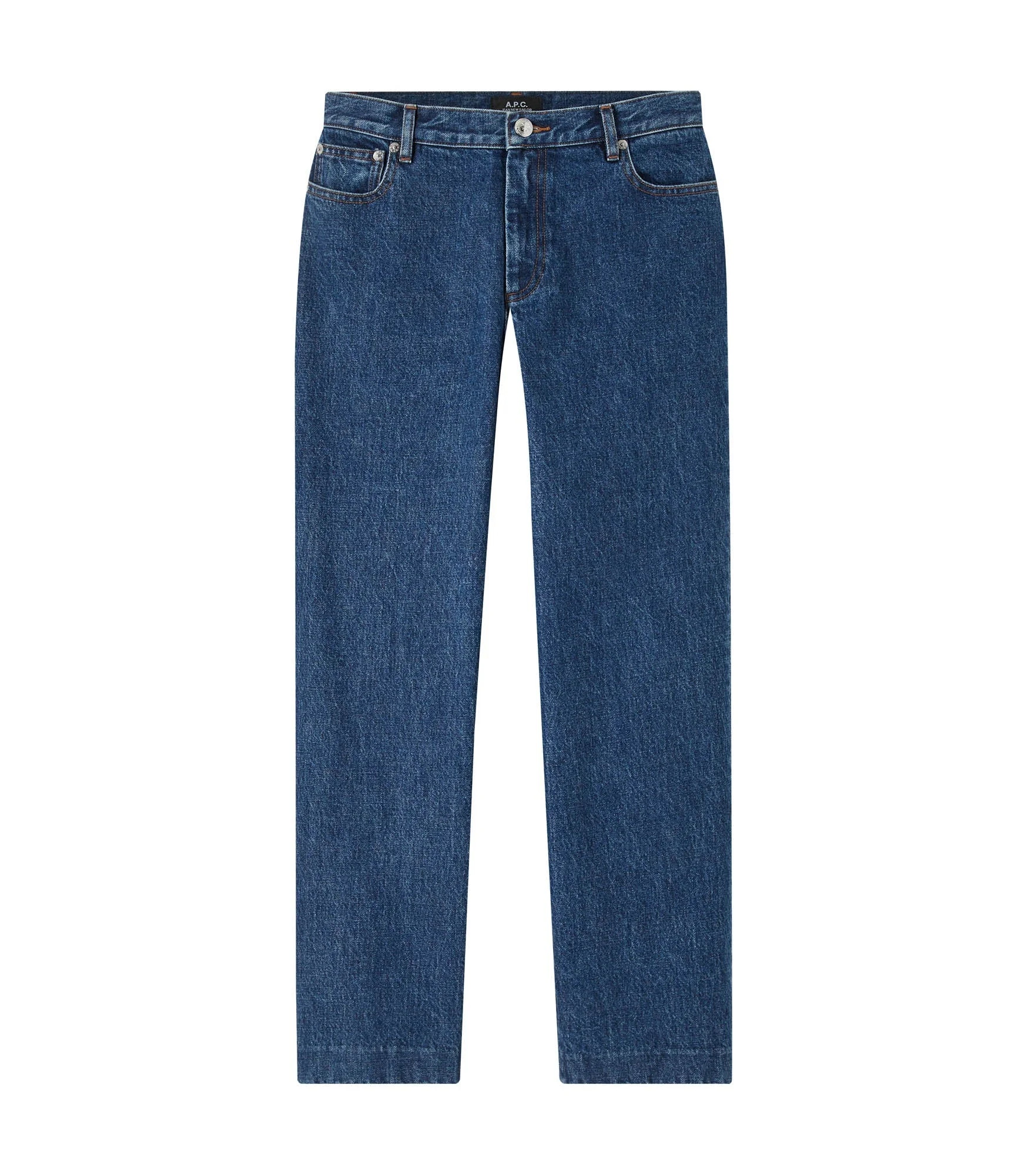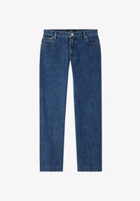 A.P.C. Women's jeans. - High rise. - Envelops the hips. - Straight leg. - 7/8 length. - Zip fly. - Caramel topstitching. - 100% organic cotton. Size Advice - Licett is 5'9 tall and is wearing size 26. Composition & Material - 100% cotton. - Japanese material. - Made in Vietnam. - Machine wash cold (86°F) inside-out. - Gentle spin cycle. - Do not tumble dry. - The jeans may appear shrunken after washing but they return to their original shape when worn.