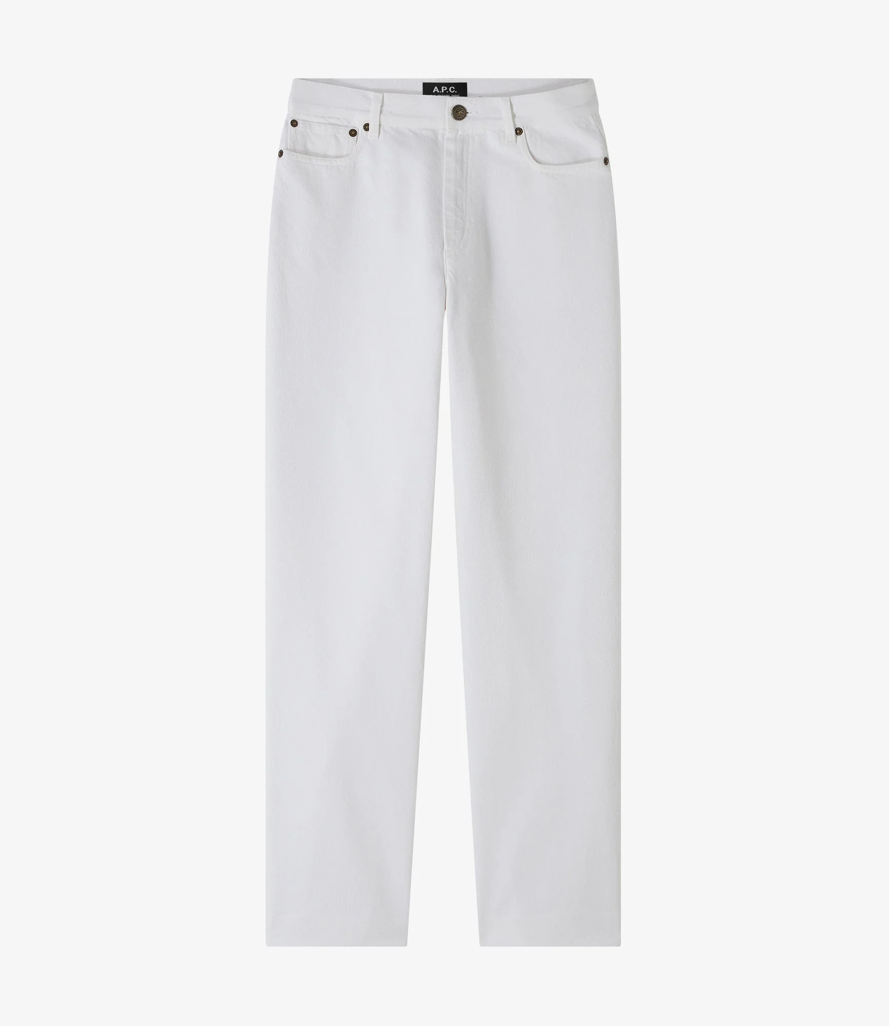 A.P.C. Women's jeans. - Fits true to size. - Less leg flare than regular Sailor jeans. - High rise. - 8 cm longer length compared to the New Sailor jeans. - Zip fly. - Tone-on-tone topstitching. - 100% organic cotton. Size Advice - Julie is 5'9 tall and is wearing size 26. - Fits true to size. - Suitable for petite body shapes. Composition & Material - 100% cotton. - Spanish material. - Made in Tunisia. - Machine wash cold (86°F) inside-out. - Gentle spin cycle. - Do not tumble dry. - The jeans may appear shrunken after washing but they return to their original shape when worn.
