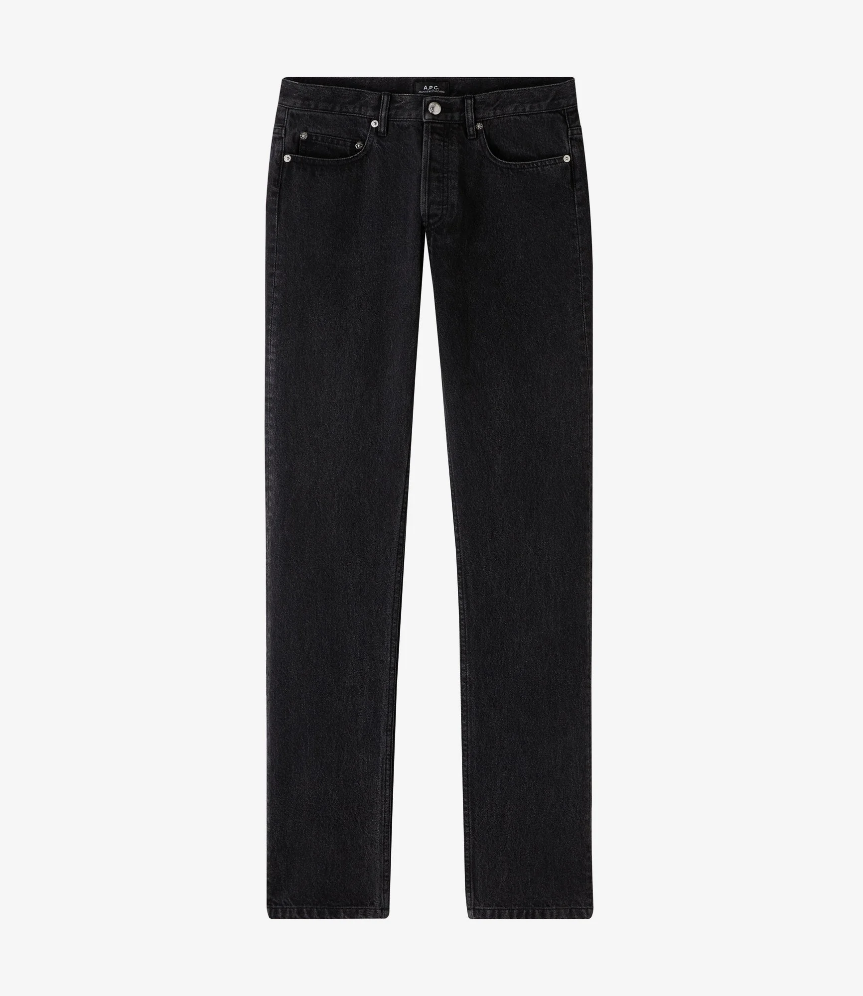 A.P.C. jeans. - Fits slimmer than our usual jeans. Please select 1 size up for regular fit. - Straight cut. - Mid-rise. - Japanese canvas. - Five pockets. - Button fly. - Tone-on-tone topstitching. Size Advice - Fits slimmer than our usual jeans. Please select 1 size up for regular fit. Composition & Material - 80% Cotton. 20% Recycled cotton. - Made in Portugal. - Machine wash 65-85°F inside-out. - Spin dry at minimum speed. - Do not tumble dry. - The jeans may appear to shrink after washing but will regain their shape when worn.