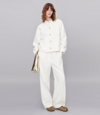 - Straight cut. - Classic collar. - Two lower pockets. - Interior pocket with visible topstitching. - Buttoned sleeves. - Faux horn buttons. - A.P.C. logo embroidered on the left pocket. - 100% organic cotton. Size Advice - Matilda is 5'9 tall and is wearing size 36. - This item sizes normally. We recommend that you select your usual size. Composition & Material - 100% cotton. - Spanish material. - Made in Tunisia. - Machine wash cold (86°F) inside-out.