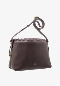 A.P.C. Women's bag. - Smooth recycled leather-like material. - Magnetic inside closure. - Drawstring closure on top. - Shoulder strap to wear the bag on the shoulder or across the chest. - One inside pocket. - Embossed goldtone A.P.C. rue Madame Paris logo on front. - In the Ninon product line. - 55% polyurethane. 40% polyester. 5% calcium carbonate. - Made in China. - Care instructions: wipe with a soft dry cloth. - Dimensions: 21 x 26 x 14 cm. Size Advice - Dimensions : 8.2 x 10.3 x 5.5. Composition & Material - 55% Polyurethane. 40% Polyester. 5% Calcium carbonate. - Made in China. - Wipe clean with a soft dry cloth.