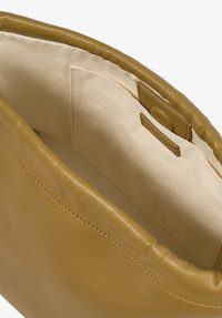 - Recycled leather-like material. - Magnetic inside closure. - Drawstring closure on the top. - Shoulder strap to carry the bag on the shoulder or across the chest. - One inside pocket. - Embossed goldtone A.P.C. rue Madame Paris logo on the front. - In the Ninon product line. Size Advice - Dimensions: 21 x 26 x 14 cm. Composition & Material - 55% polyurethane. 40% polyester. 5% calcium carbonate. - Made in China. - Care instructions: wipe with a soft dry cloth.