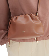 A.P.C. Women's bag. - Recycled leather-like material. - Interior magnetic closure. - Drawstring closure on top. - Strap to wear the bag on the shoulder or across the chest. - 1 interior pocket. - Goldtone 'A.P.C. Rue Madame Paris' logo embossed on front. - In the same line as the Ninon bag Ninon Shoulder bag Ninon drawstring bag Ninon Small drawstring bag and Ninon tote bag. Size Advice Dimensions : 17 x 21 x 10 cm. Composition & Material - 60% polyurethane. 40% polyester. - Made in China. - Care instructions: wipe with a soft dry cloth.