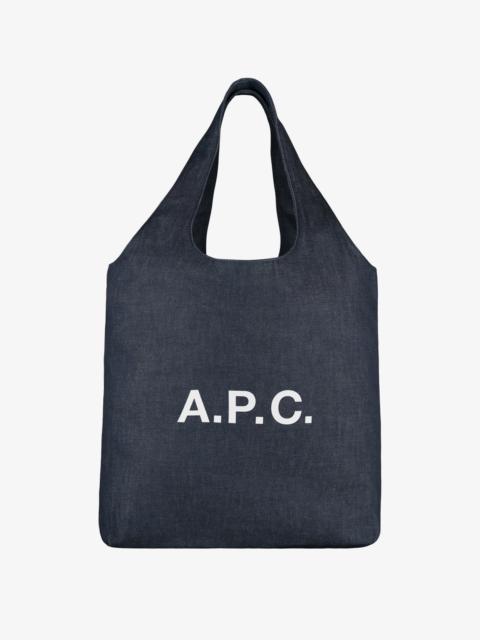 A.P.C. Women's bag. - Unisex model. - Two large handles to carry the bag by hand or on the shoulder. - One interior pocket. - White 'A.P.C.' logo. - In the Ninon product line . Size Advice - Dimensions: 13.4 x 20.9 x 4.3. - Small version of the Ninon tote bag. Composition & Material - 98% cotton. 2% polyurethane. - Made in China.