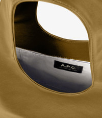 - Unisex piece. - Recycled leather-like material. - Two large handles to carry the bag by hand or on the shoulder. - One inside pocket. - White A.P.C. logo. Size Advice - Dimensions: 34 x 53 x 11 cm. - Small version of the Ninon tote bag. Composition & Material - 88% polyurethane. 8% wood 4% other fibres. - Made in China. - Care instructions: wipe with a soft dry cloth.
