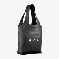 PRODUCT DETAILS - Unisex model. - Recycled leather-look material. - Two large handles. May be carried by hand or on shoulder. - Interior pocket. - White A.P.C. logo. - Part of the Ninon line of products. FABRIC & CARE - 60% Polyurethane. 40% Polyester. - Made in China. - Wipe clean with a soft, dry cloth. SIZE - Dimensions: 13.4 x 20.9 x 4.3". - Small version of the Ninon tote bag.