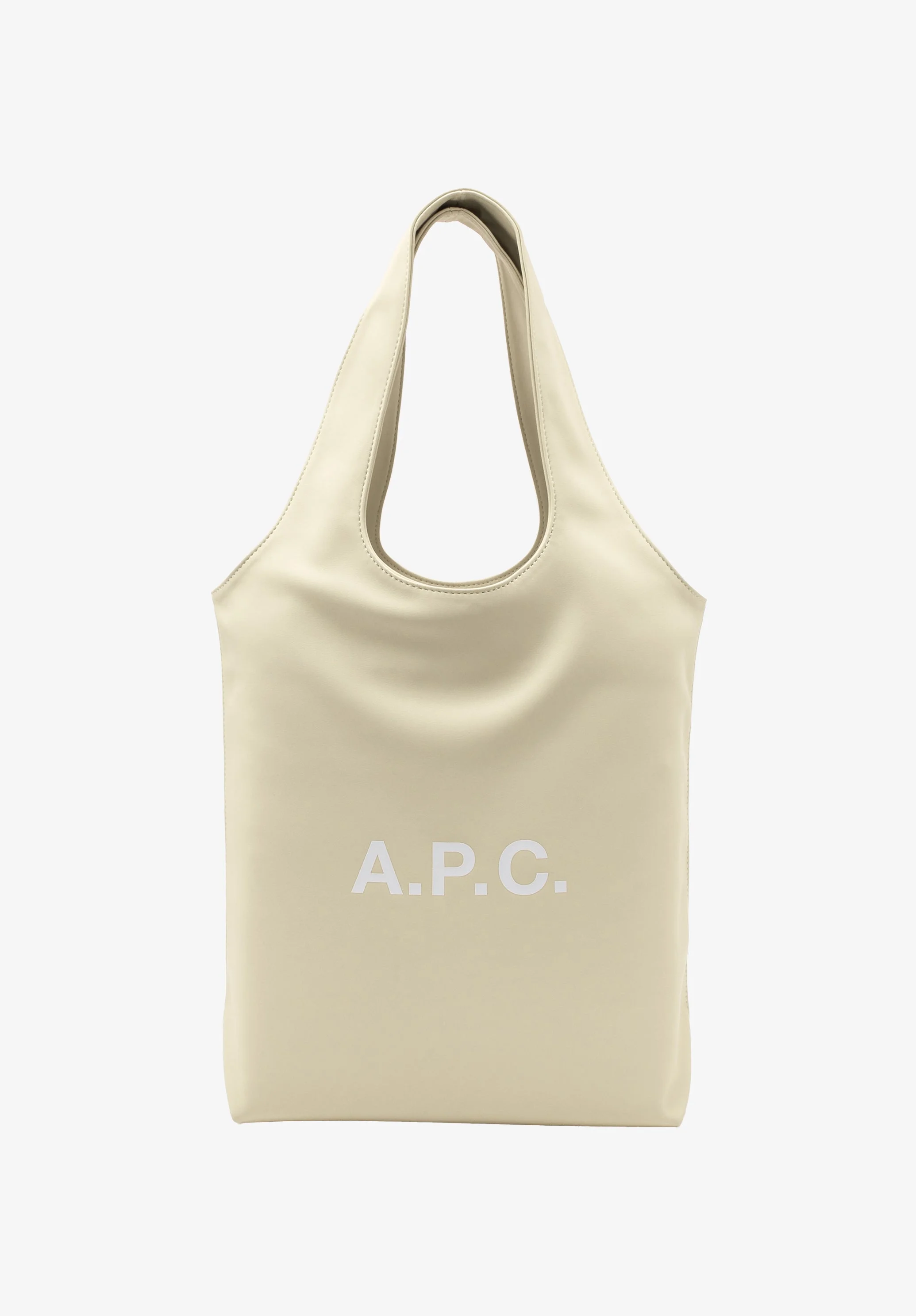 - Unisex. - Recycled leather-like material. - Two large handles to carry the bag by hand or on the shoulder. - One inside pocket. - White A.P.C. logo. Size Advice - Dimensions: 34 x 53 x 11 cm. - Small version of the Ninon tote bag. Composition & Material - 55% polyurethane. 40% polyester. 5% calcium carbonate. - Made in China. - Care instructions: wipe with a soft dry cloth.