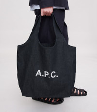 - Unisex. - Two large handles to carry the bag by hand or on the shoulder. - One inside pocket. - A.P.C. logo in front. Size Advice - Dimensions: 17.7 x 14 x 5.5. Composition & Material - 100% cotton. - Japanese material. - Made in China. - Care instructions: wipe with a soft dry cloth.