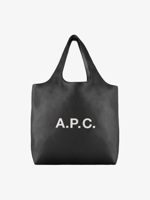 PRODUCT DETAILS - Unisex model. - Recycled leather-look material. - Two large handles. May be carried by hand or on shoulder. - Interior pocket. - White A.P.C. logo. - Part of the Ninon line of products. FABRIC & CARE - 60% Polyurethane. 40% Polyester. - Made in China. - Wipe clean with a soft, dry cloth. SIZE - Dimensions : 17.7 X 13.7 x 5.5".