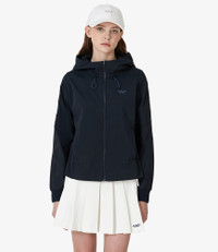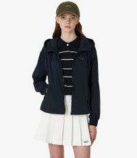 A.P.C. Women's jacket. - Breathable material. - Straight cut. - High collar and adjustable hood with drawstrings. - Adjustable size. - Mesh opening rear flaps for greater flexibility and breathability. - Zip closure. - A.P.C. Golf logo over the heart. Size Advice - Angelina is 5'8 tall and is wearing size S. Composition & Material - 93% nylon. 7% elastane. - Made in South Korea. - Machine wash cold (86°F) inside-out.