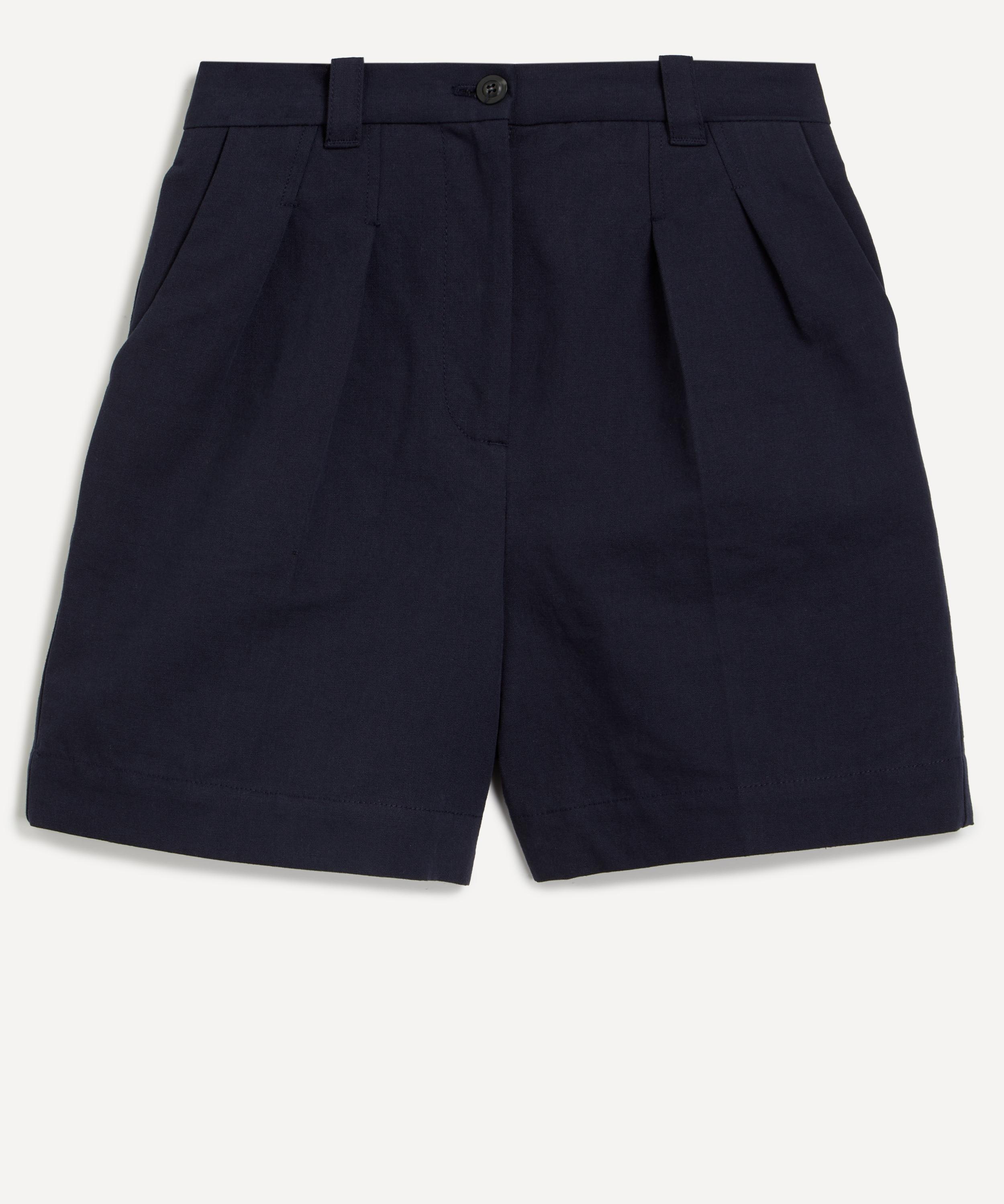DETAILS Nola shorts V-neck Cotton linen blend Pleat detailing Dart detailing Mid-rise Wide leg Thigh-length Two side inset pockets Rear welt pocket Unlined Belt loops Zip fly and button fastening SIZE & FIT Model is 178cm/5'10"; Chest: 84cm; Waist: 63cm; Hip: 93cm and wears a size 8 COMPOSITION & CARE 76% Cotton; 24% Linen/Flax Machine washable