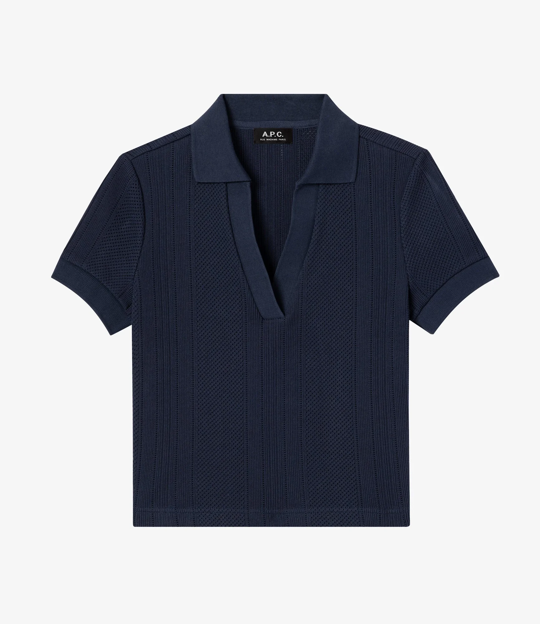 - Crochet effect. - Straight cut. - V-neck polo shirt collar. - Openwork knit details all over. - This garment is GOTS-certified which guarantees the organic origin of this clothing and the compliance with strict social and environmental criteria throughout the production chain. - GOTS-certified product (No. 214416/EGL) - Organic textile. Size Advice - Matilda is 5'9 tall and is wearing size S. - This item sizes normally. We recommend that you select your usual size. Composition & Material - 100% cotton. - Portuguese material. - Made in Portugal. - Machine wash cold (86°F) inside-out.