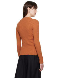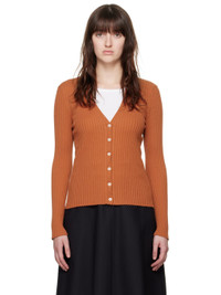 Rib knit cotton cardigan. · Y-neck · Button closure Part of the A.P.C x Katie Holmes collaboration. Supplier color: Terracotta 100% cotton. Made in Italy 242252F095003