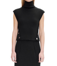A.P.C. Women's knit sweater. - Straight cut. - Stand-up collar. - Closure on each side with four silvertone buttons engraved A.P.C. - May be worn with Raven skirt. - Composed of 80% organic cotton and 20% GOTS-certified Merino wool. Global Organic Textile Standard is the international standard for organic fibers with independent certification of the entire textile supply chain. Size Advice - Britt is 5'10 tall and is wearing size S. - This model fits true to size; choose your usual size. Composition & Material 80% Cotton. 20% Wool. - Italian material. - Made in Romania. - Dry clean. Our commitments Through its RESPECT program A.P.C reduces (by implementing many practical measures to improve its environmental footprint) regulates (by respecting and enforcing its ethical responsibility on the part of its employees as well as its suppliers) and reuses (through its recycling vintage or quilts and butler programs for example).