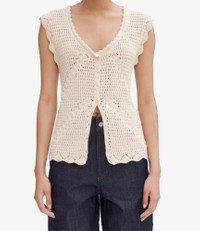- Soft openwork material. - Fitted cut. - Deep V-neck. - Scalloped armholes. - Mother-of-pearl buttons. - 100% organic cotton. Size Advice - Julie is 5'9 tall and is wearing size S. Composition & Material - 100% cotton. - Peruvian material. - Made in Peru. - Hand wash or delicate cycle.