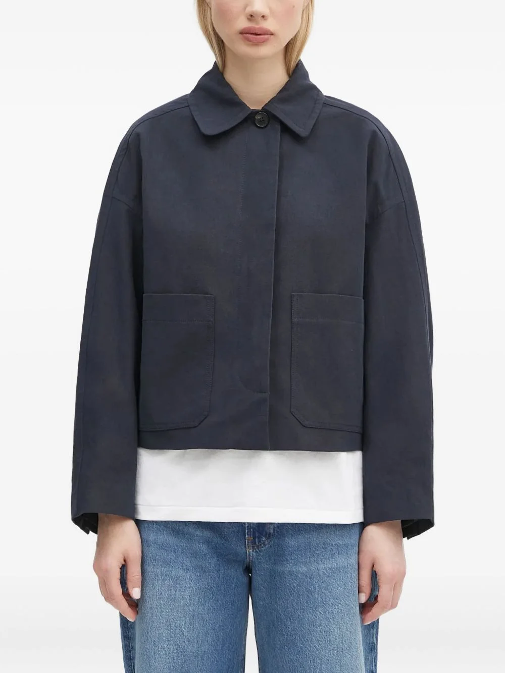 patch-pocket cropped jacket Highlights - Navy blue - Cropped length - Classic collar - Concealed front fastening - Front patch pockets Imported Composition Fabric 100% Washing instructions Read Manufacturer Guidelines