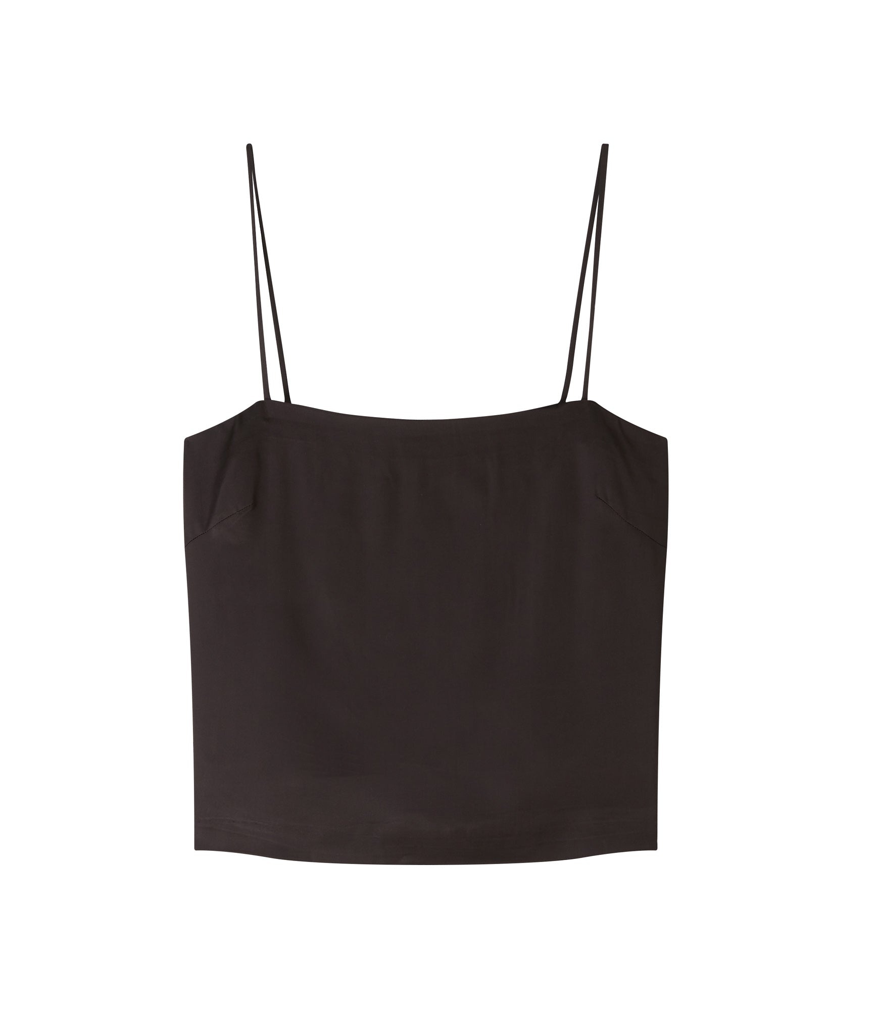- Flowing satiny material. - Straight cut. - Spaghetti straps. - Tone-on-tone viscose lining. - 100% viscose from FSC (Forest Stewardship Council) forests. - Wear with the Gala skirt. Size Advice - Sofi is 5'10 tall and is wearing size S. Composition & Material - 100% viscose. - Italian material. - Made in Tunisia. - Dry clean only.