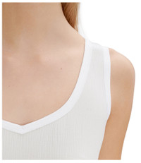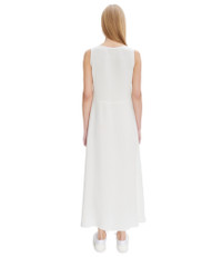 A.P.C. Women's dress. - Straight cut. - Ankle length. - Scoop neckline. - Contrasting trim at neckline and armholes. - Composed of 85% EcoVero viscose: sturdy breathable viscose from forests certified durable. Size Advice - Britt is 5'10 tall and is wearing size 36. - This model fits true to size; choose your usual size. Composition & Material - 85% Viscose. 15% Polyamide. - Made in Tunisia. - Dry clean. Our commitments Through its RESPECT program A.P.C reduces (by implementing many practical measures to improve its environmental footprint) regulates (by respecting and enforcing its ethical responsibility on the part of its employees as well as its suppliers) and reuses (through its recycling vintage or quilts and butler programs for example).